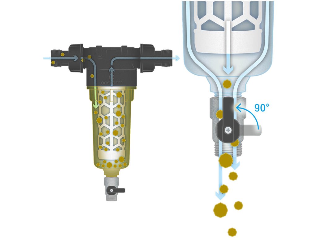 - Samočistiaci systém: Vypúšťanie nečistôt jednoduchým otvorením ventilu – bez potreby demontáže.