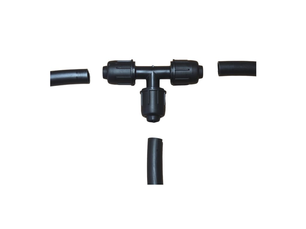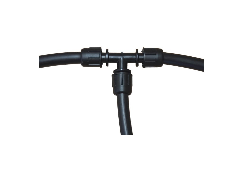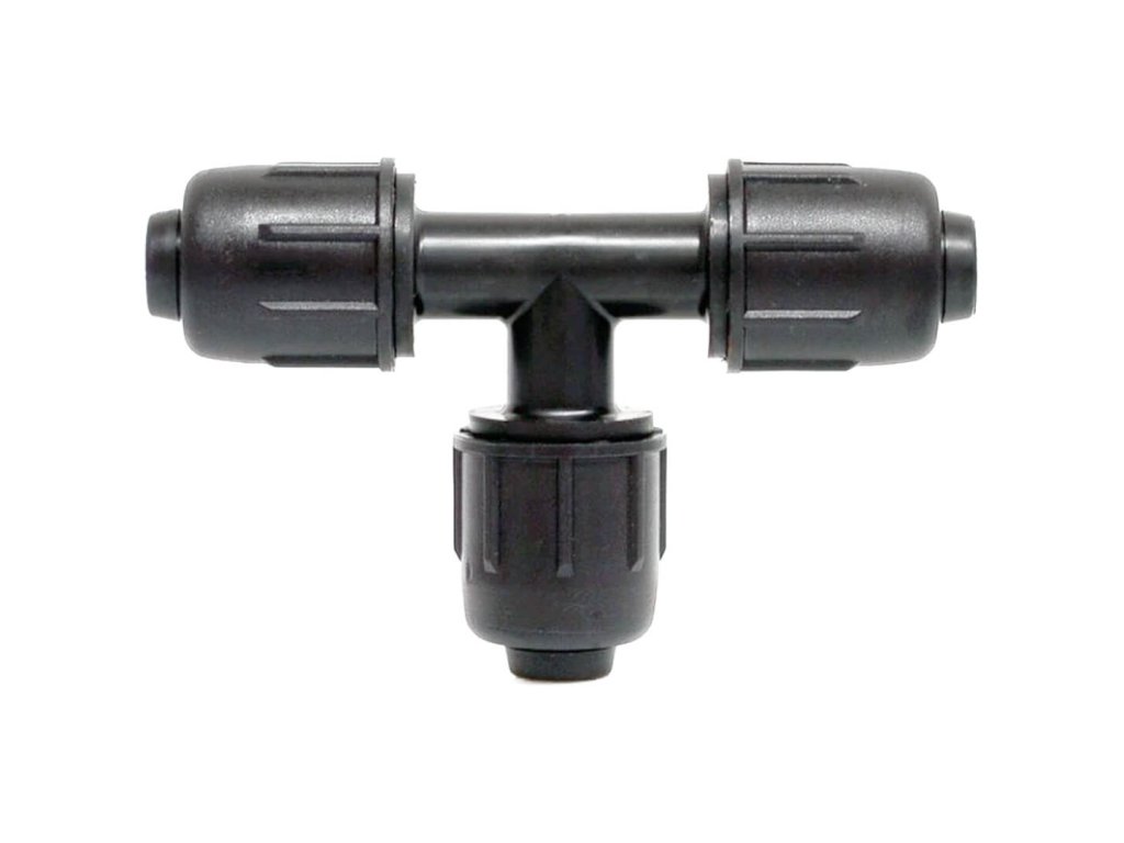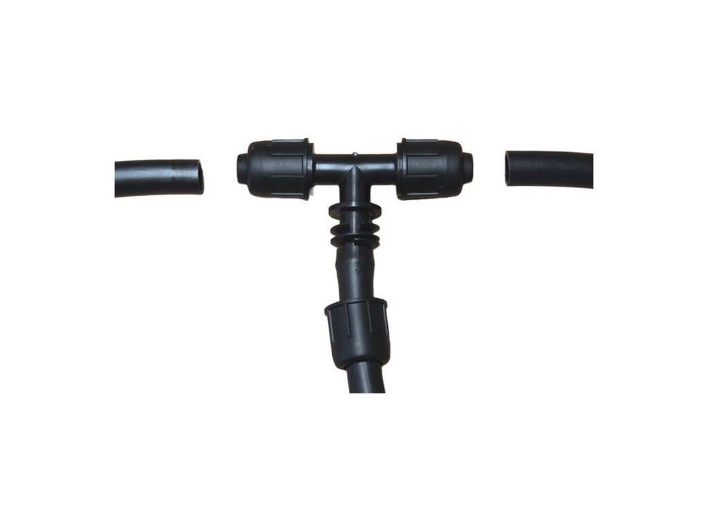 T-kus je kompatibilný so všetkými PE hadicami 20 mm. Vyznačuje sa dlhou životnosťou a vysokou odolnosťou voči UV žiareniu, tlaku a mechanickému namáhaniu. Vhodné pre závlahové systémy a záhradníctvo.