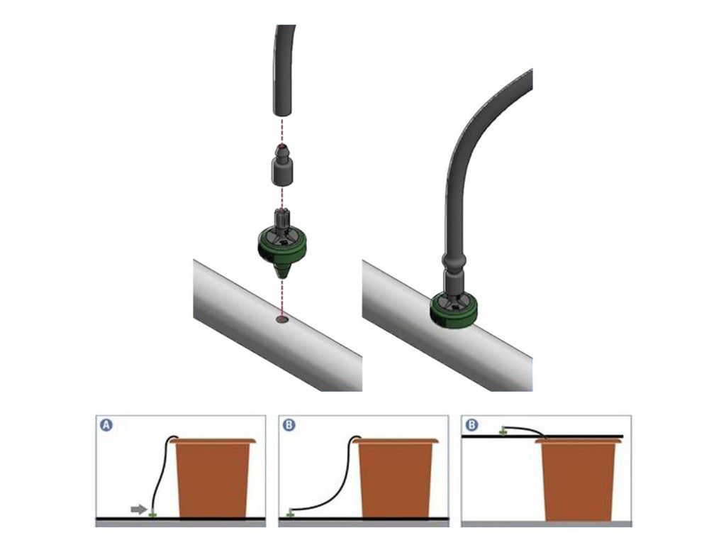 Adaptér je určený pre kvapkové zavlažovacie systémy v záhradách, skleníkoch, škôlkach, viniciach alebo pri bodovej závlahe rastlín v kontajneroch. Umožňuje flexibilné vedenie vody pomocou mikrohadíc.