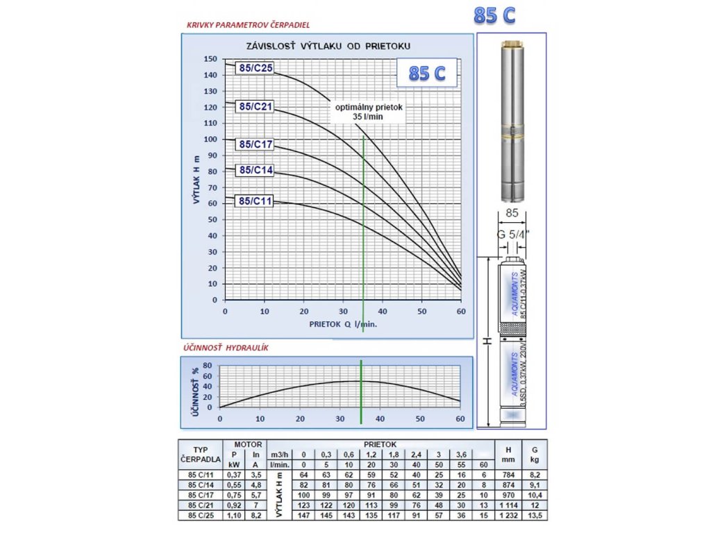 - Prevedenie čerpadla: 85 – 3,5"