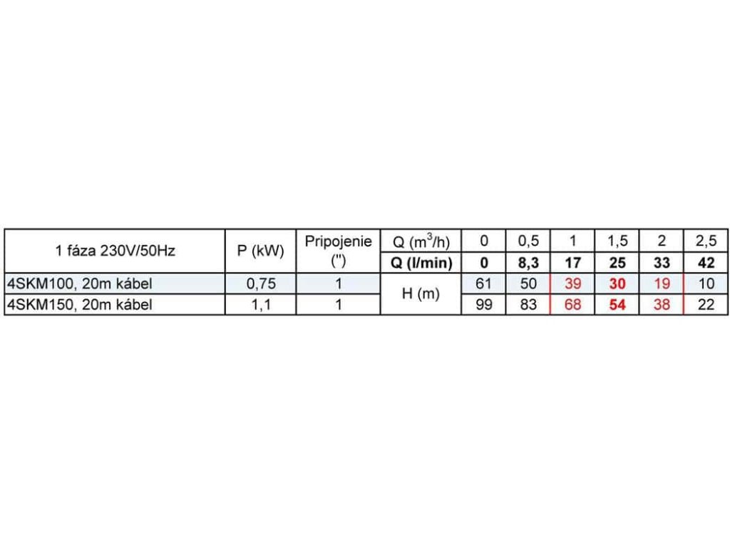 - Optimálny výtlak: 54 m pri 25 l/min