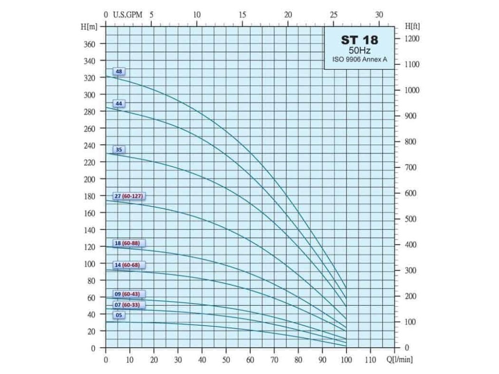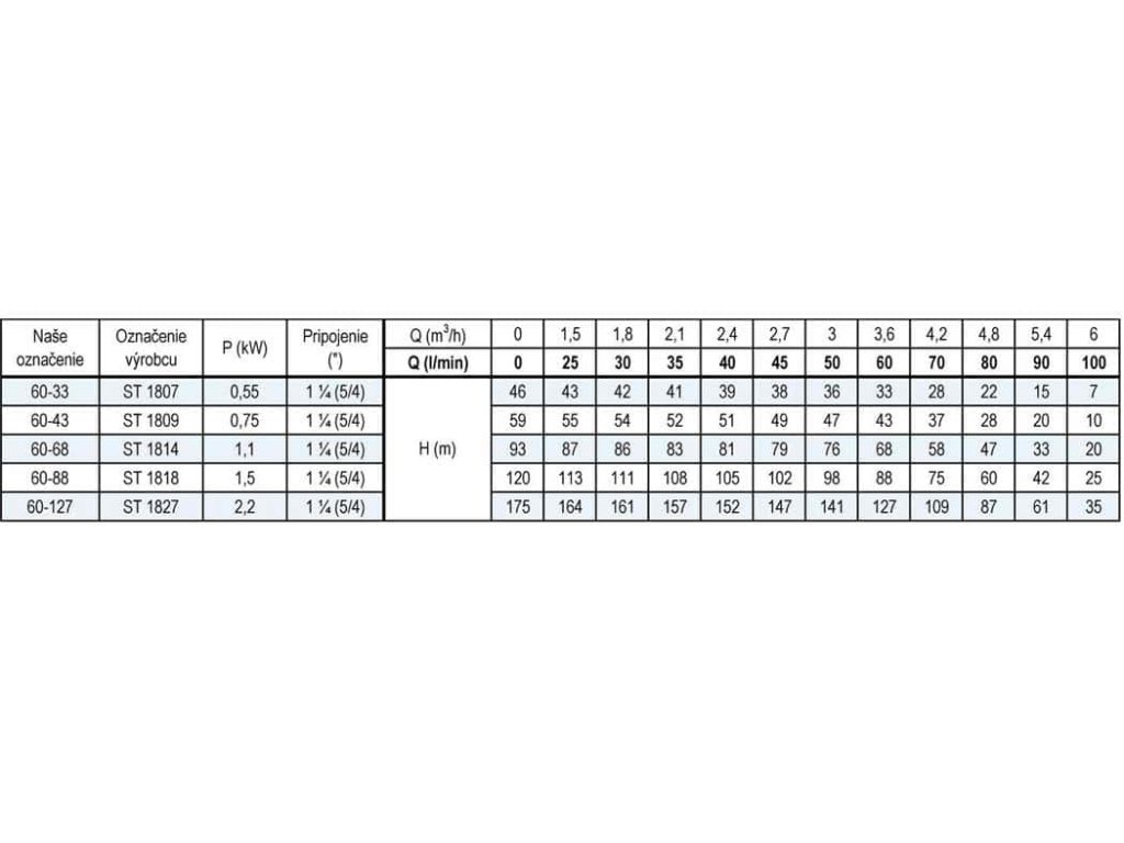 - Optimálny výtlak: 68 m pri prietoku 60 l/min