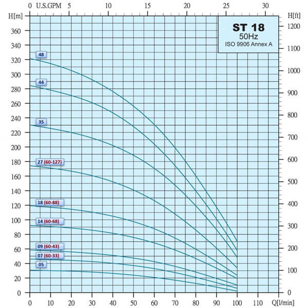 Hydraulika typu ST s plávajúcimi obežnými kolesami z materiálu Noryl zabezpečuje vysokú odolnosť voči piesku až do 150 g/m3. Celonerezové vyhotovenie z ocele AISI 304 spolu so špeciálnym tesnením umožňuje bezpečný ponor až do 350 m.