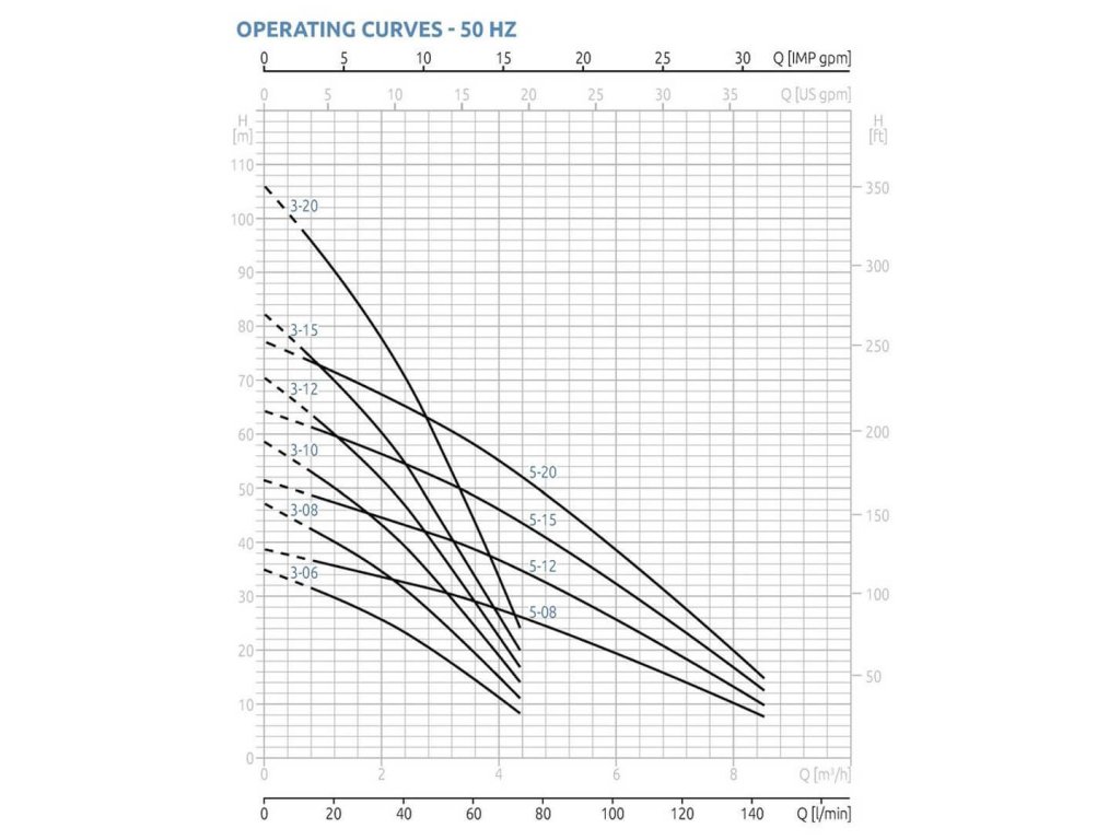 - Stabilný pracovný bod: 40 l/min pri 47 m – vhodné pre bežný rodinný dom s rezervou tlaku.