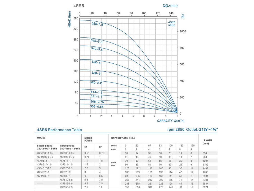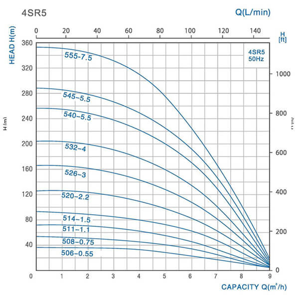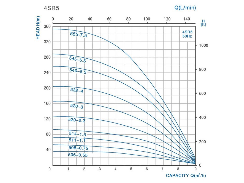 JIADI 4SRM 511 pracuje najefektívnejšie pri prietoku 83 l/min a výtlaku 56 m, čo zabezpečuje stabilnú prevádzku a dlhú životnosť hydrauliky.