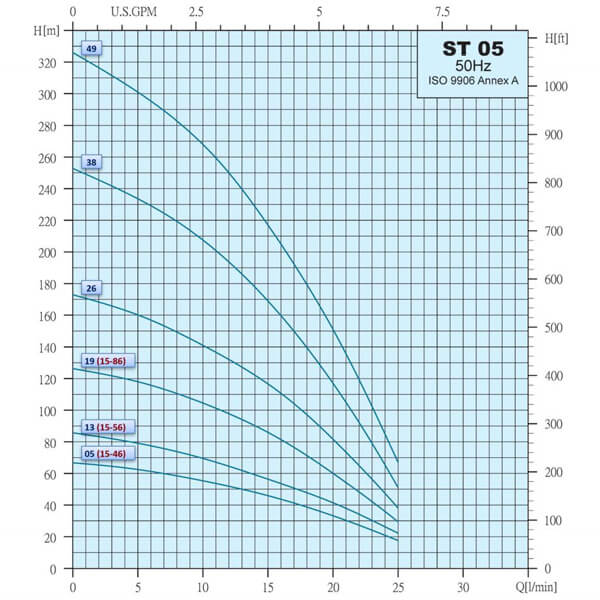 Zobraziť prietokovú krivku čerpadla SD 15-46