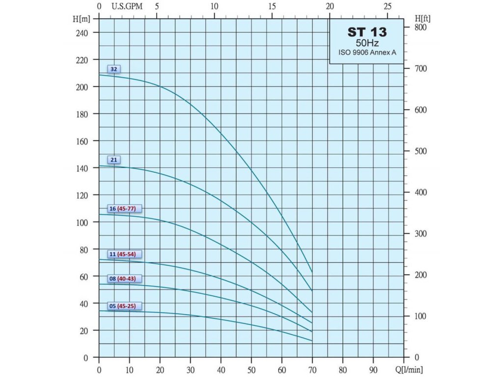 Model STAIRS 45-54 dosahuje optimálny pracovný bod pri prietoku 45 l/min a výtlaku 54 m, čo zabezpečuje stabilný tlak aj pri väčšom výškovom rozdiele.