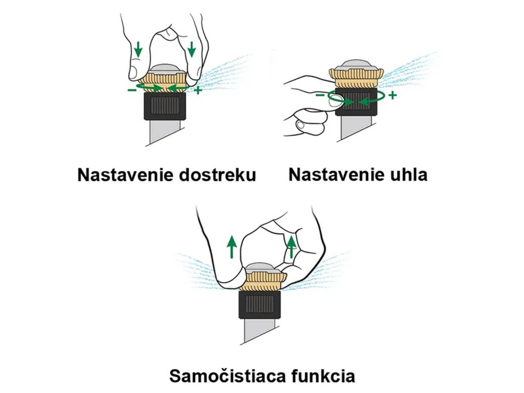 - Nastaviteľný uhol zavlažovania 45°–270°.