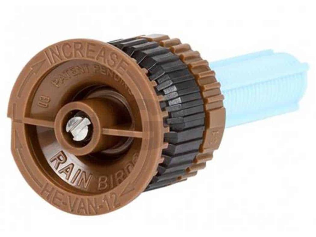 Rain Bird HE-VAN-12 je nastaviteľná sprejová tryska s rozsahom výseče od 0° do 360° a dostrekom do 3,7 m. Určená je pre presné a rovnomerné zavlažovanie malých až stredne veľkých plôch s členitým tvarom. Vďaka technológii Flow Control zabezpečuje rovnomerný podstrek aj pri nízkom tlaku.