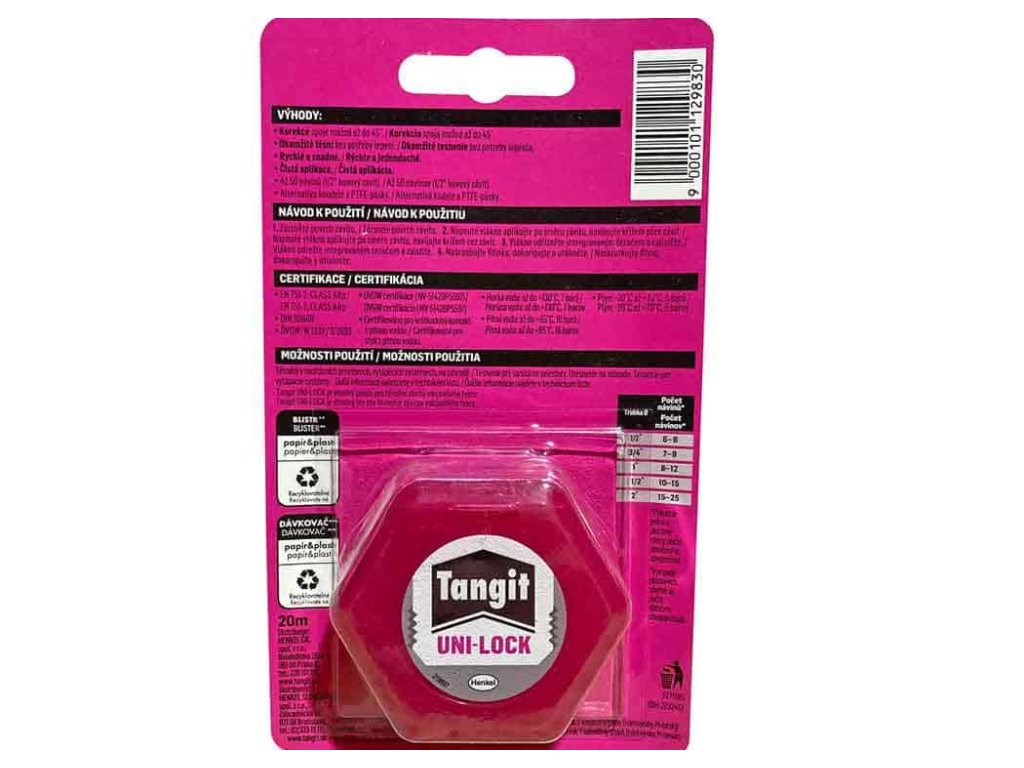 Teflonová niť TANGIT 20 m pre tesnenie závitov. Používa sa pre utesnenie všetkých závitových spojov. Závitové tesnenie pre všeobecné použitie. Vhodné pre spájanie plastových, zinkových a mosadzných spojov. Odoláva teplotám od -20 °C do +130 °C a tlaku až 16 bar.