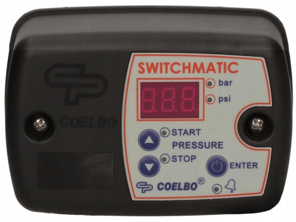 Tlakový spínač SWITCHMATIC 1 je elektronické zariadenie s integrovaným digitálnym manometrom, určené na riadenie jednofázových čerpadiel s výkonom do 2,2 kW. Vďaka prehľadnému ovládaciemu panelu je nastavenie zapínacieho a vypínacieho tlaku jednoduché a presné.