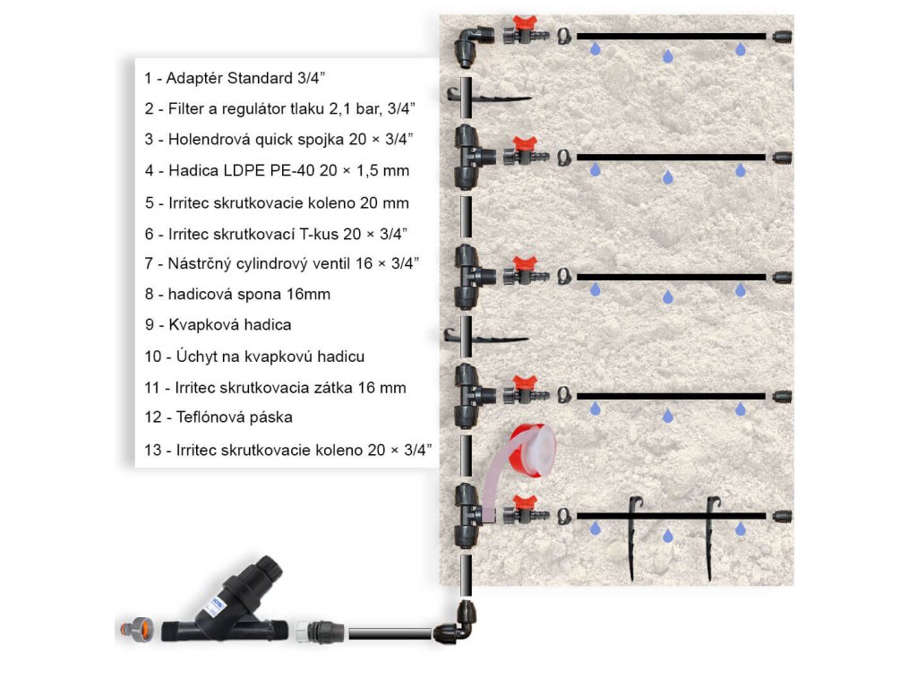 Kvapkový zavlažovací set HG33102020 – úsporná závlaha bez riadiacej jednotky